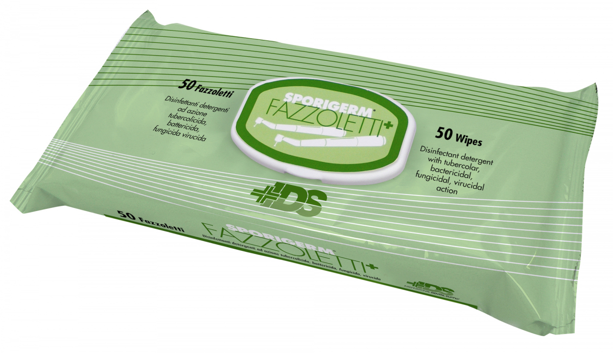 Fazzoletti disinfettanti-detergenti in TNT, imbevuti di una soluzione a base di benzalconio cloruro e o-fenilfenolo, ad azione tubercolicida, battericida, fungicida e virucida. Pronti all'uso, è sufficiente passare i fazzoletti sulla superficie da trattare e lasciare agire per 1 minuto per eliminare HIV, HCV e HBV (5 minuti su TBC). Possono essere utilizzati su ogni tipo di superficie incluse plastiche, gomme e pelle; sono in grado di rimuovere completamente residui organici (sangue, saliva ed essudati). Il flow-pack con tappo di chiusura evita che i fazzoletti si secchino, eliminando sigilli adesivi che si appiccicano ai guanti. Flow-Pack da 50 fazzoletti