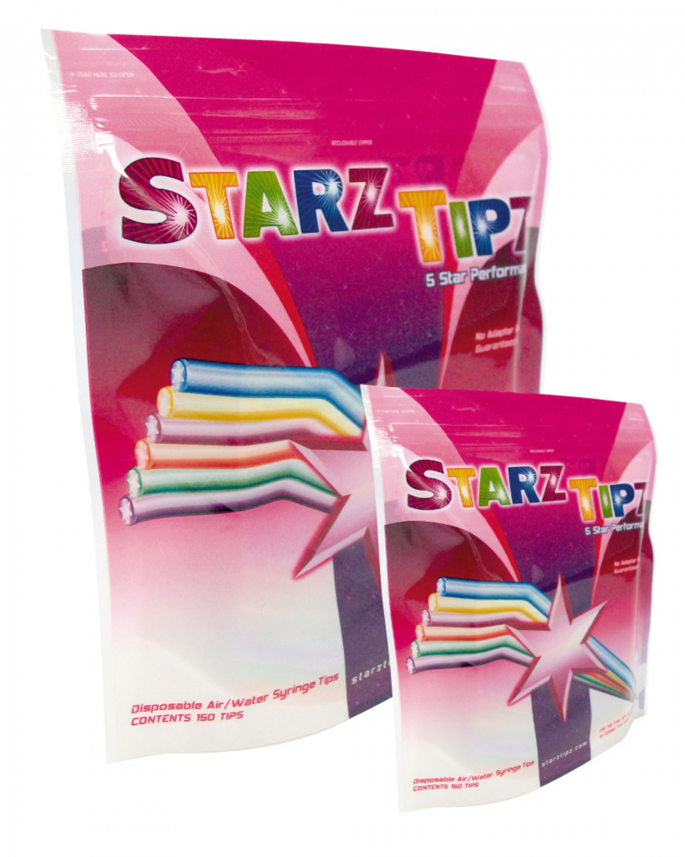 STARZ TIPZ HP (High Presure) Puntali monouso aria/acqua che garantiscono aria sempre asciutta: grazie al design (costruzione a doppio corpo) e agli speciali attacchi rapidi Quick&Dry, aria ed acqua vengono efficacemente tenute separate. Due ugelli garantiscono un getto d'aria sempre asciutto, potente ed efficace. Pratici nell'uso Starz Tipz HP consentono una riduzione dei tempi e dei materiali per la pulizia, disinfezione e sterilizzazione e costituiscono un notevole passo in avanti nel controllo delle contaminazioni incrociate e nell'abbattimento dei rischi infettivi nello studio odonoiatrico. Confezione: 150 puntali - Colori Assortiti.