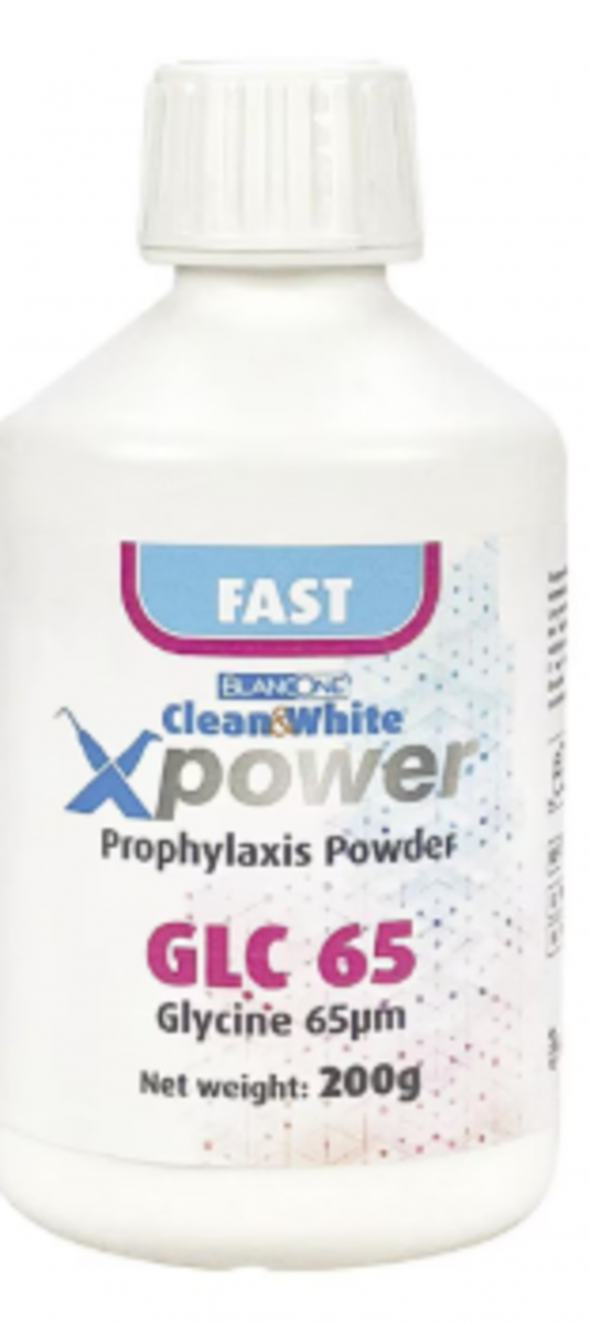 Il CLEAN & WHITE XPOWER GLC65 FAST è una polvere profilattica per trattamenti odontoiatrici sotto gengivali, formulata con glicina. È progettata per l'uso con sistemi di profilassi come il Blancone® XPower, garantendo un'azione delicata ma efficace.