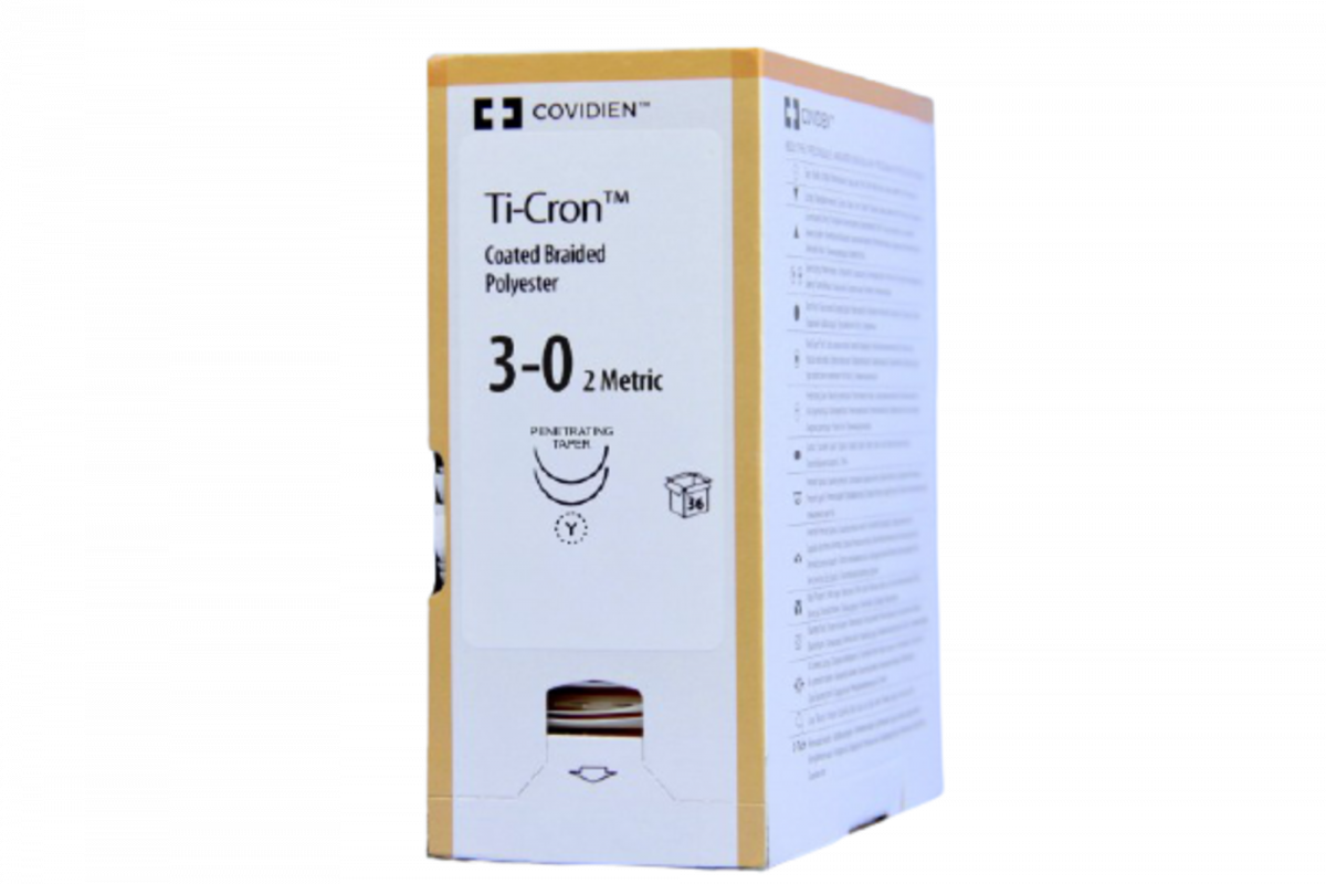 Suture in poliestere Ti-Cron™ sterili non assorbibili composte da polietilene tereftalato.