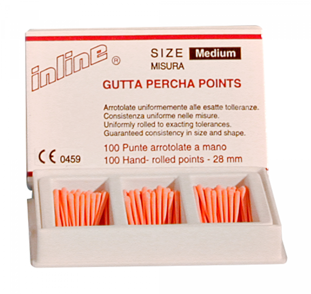CONI DI GUTTAPERCA IP50 Punte di guttaperca normalizzate, per l'otturazione dei canali radicolari. Lunghezza 28 mm. Confezione: 100 pezzi, in scomparti - Colore Rosa