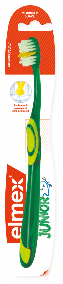 Per facilitare lo spazzolamento durante la fase di dentizione mista, lo spazzolino elmex® JUNIOR è stato sviluppato con speciali setole a X che puliscono in modo particolarmente efficace gli spazi interdentali, aiutando i bambini a rimuovere efficacemente la placca.