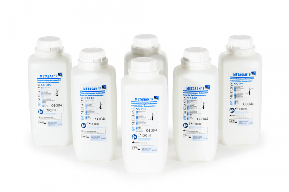 Disinfezione continua dell’acqua di processo nelle unità operative odontoiatriche (dental units), con prevenzione della formazione di biofilm e protezione contro l’accumulo di calcare nei condotti idrici.