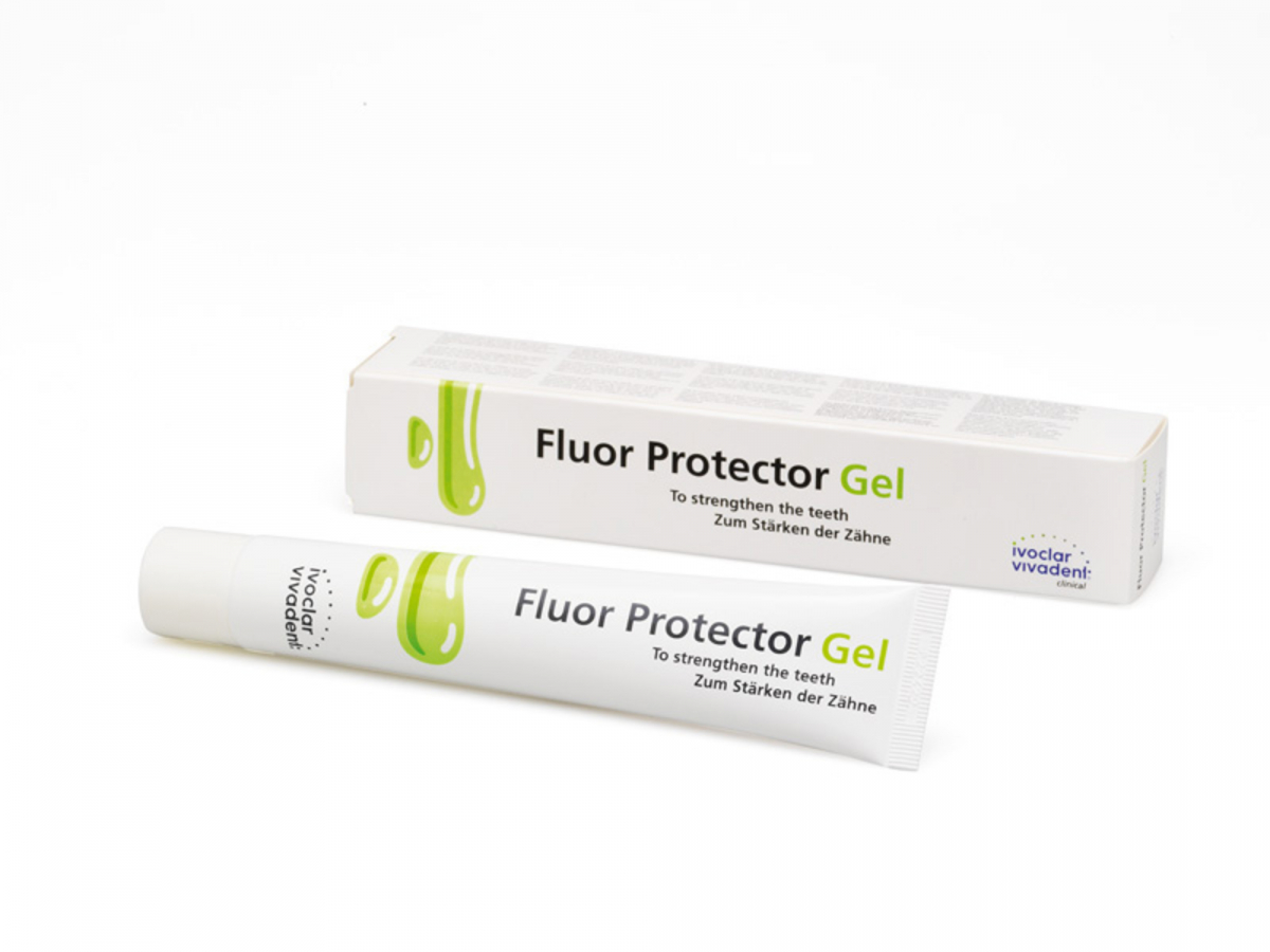 FLUOR PROTECTOR GEL Gel per la cura dentale intensiva: calcio, fluoro e fosfato proteggono, riparano ed induriscono lo smalto dentale indebolito ed usurato. Indicato nella profilassi quotidiana contro la carie, le erosioni e i disturbi parodontali, è particolarmente adatto per denti sensibili, erosioni cervicali, alimentazione ad alto contenuto acido, in caso di bocca asciutta, reflusso, durante i trattamenti ortodontici, dopo la pulizia professionale dei denti nonchè nell'ambito dei trattamenti sbiancanti. Al leggero sapore di menta, lascia una gradevole sensazione in bocca. Tubo da 50 gr