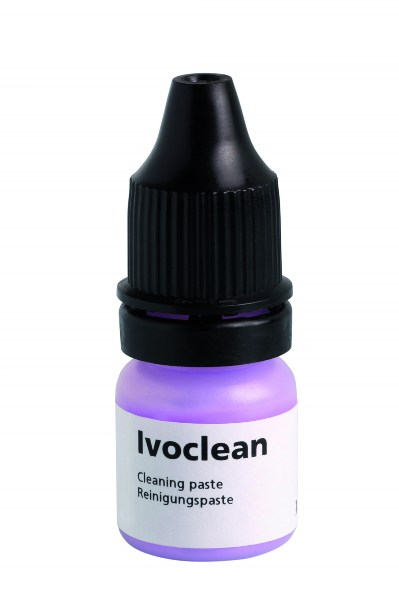 IVOCLEAN Pasta detergente indicata per la rimozione di impurità, in particolare di proteine, che aderiscono alla superficie del restauro dopo la messa in prova. Ivoclean agisce su tutti i materiali da restauro, detergendo in maniera efficace le superfici di contatto del restauro contaminate da saliva, e crea la base per un legame duraturo e resistente fra cemento composito, adesivo e restauro. Flacone da 5 gr