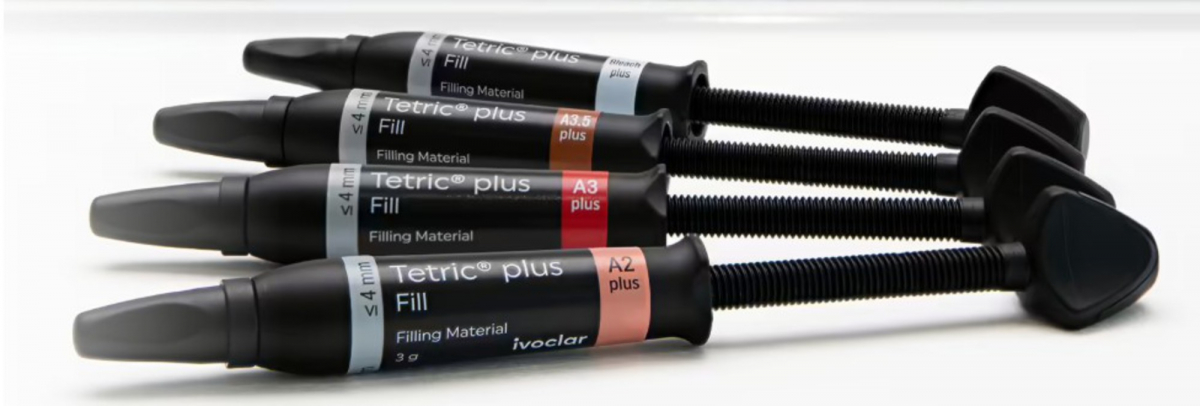 “Bleach Plus” — tono molto chiaro, parte dei 4 shade universali della linea Tetric plus (che coprono le nuance VITA classiche + Bleach)