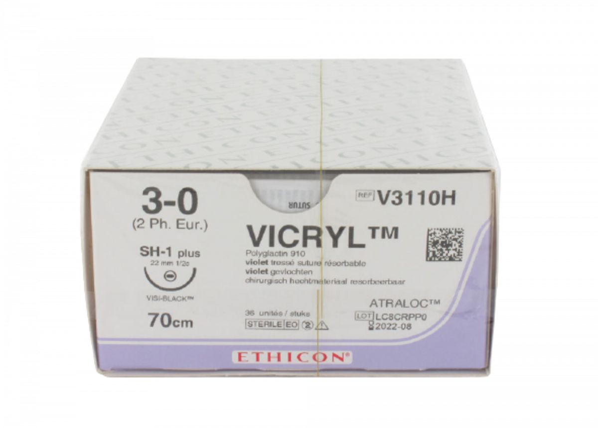 SUTURE VICRYL Sutura sintetica, a base di copolimero di acido glicolico ed acido lattico (Polyglactin 910), assorbibile, intrecciata, di colore viola o non colorato (bianco). La presenza dell'acido lattico e del dodecanolo (componente della famiglia degli alcool aggiunto durante il processo di polimerizzazione) garantiscono la massima resistenza tensile nei primi giorni d'impianto. Estremamente maneggevole, è caratterizzata da un'ottima scorrevolezza, grazie al particolare rivestimento (Polyglactin 370 e stearato di calcio) e risulta essere la sutura più versatile per le possibili applicazioni chirurgiche.