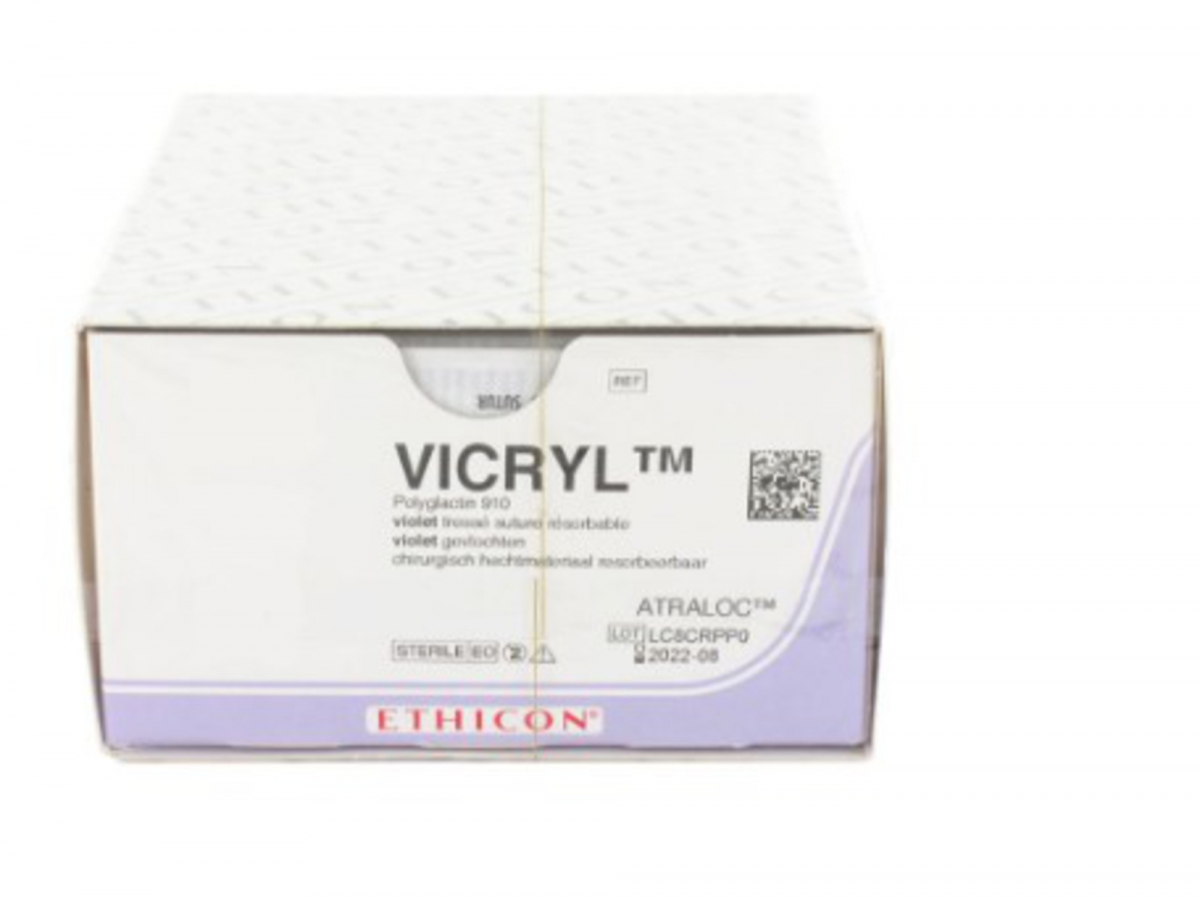 • Tipo / materiale: polyglactin 910, sutura sintetica assorbibile e intrecciata (coated)