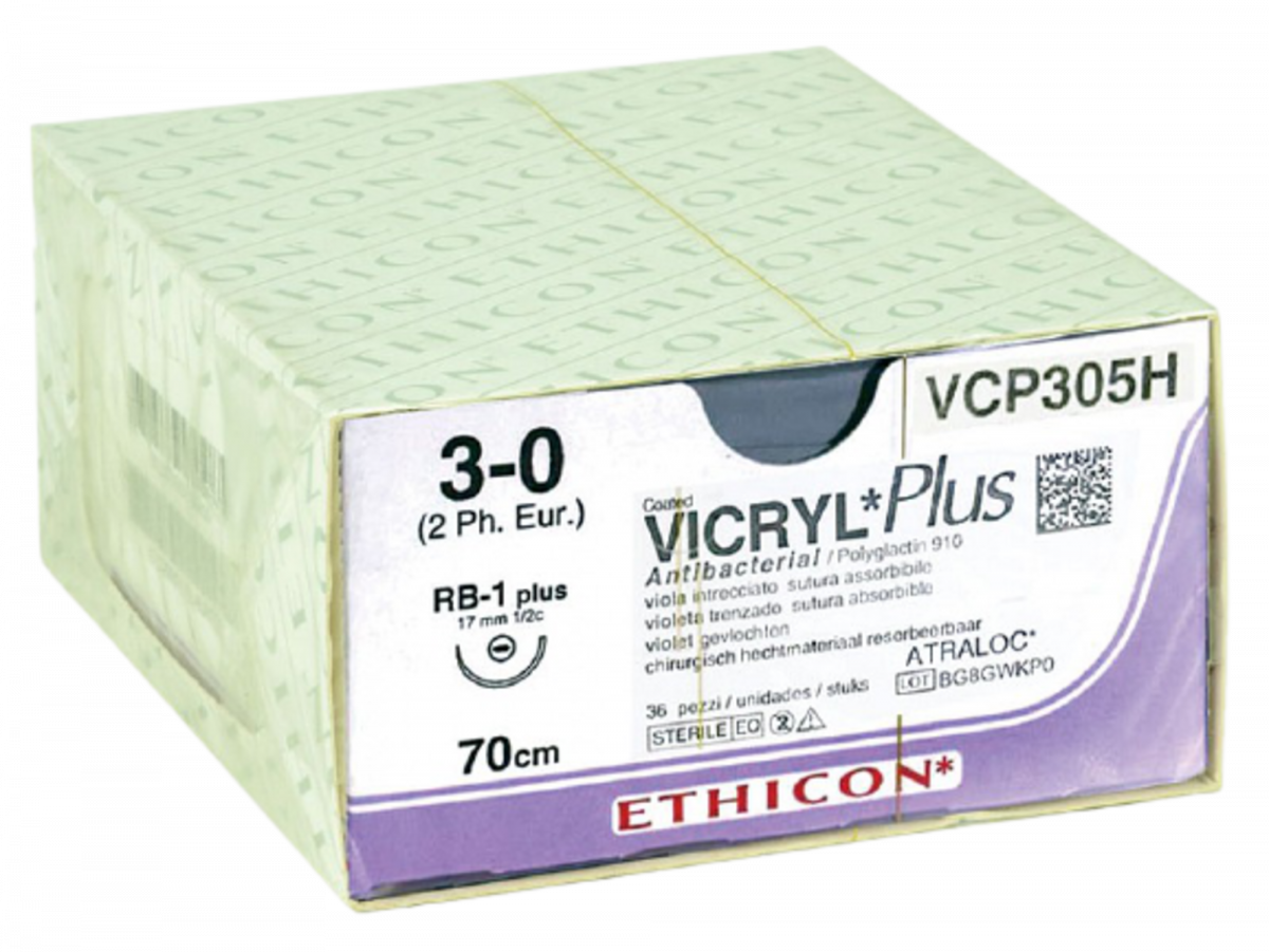 SUTURE VICRYL PLUS Sutura sintetica, a base di Polyglactin 910 (copolimero di acido glicolico e acido lattico) rivestito di Polyglactin 370 e stearato di calcio, assorbibile, intrecciata, antibatterica, di colore viola o non colorato (bianco). Nel rivestimento è presente l'Irgacare MP, la forma più pura di Triclosan, un agente antibatterico ad ampio spettro che crea una zona batteriostatica che non permette la colonizzazione della sutura da parte degli Staphilococchi e dei ceppi Meticillino-resistenti. Vicryl Plus è la prima sutura antibatterica al mondo: è indicata per l'approssimazione e/o la legatura dei tessuti molli nei casi in cui sia indicato l'uso di suture in materiale assorbibile.