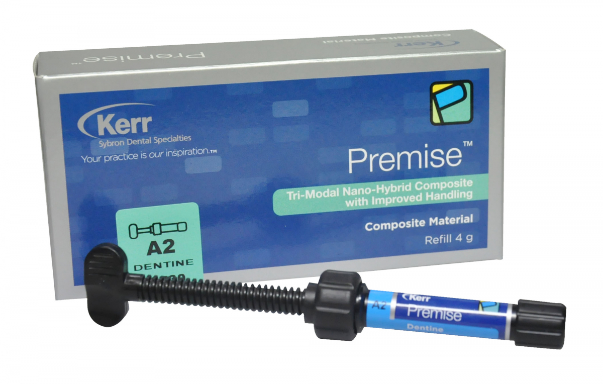 PREMISE - Kerr Composito universale tri-modale, realizz ato con la nano-tecnologia, per restauri anteriori e posteriori. La sua particol are formulazione caratterizzata da tre r iempitivi diversi e la percentuale di pe so dell'84% lo rendono facilmente lavora bile, non appiccicoso e particolarmente resistente. La ridotta contrazione da po limerizzazione rispetto agli altri mater iali permette di ridurre le micro lesion i e la decolorazione in prossimità dei m argini. Confezione ricambio siringa da 4 GR dent ina