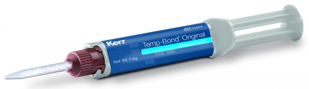 TEMPBOND Cemento provvisorio autoindurente, a base di ossido di zinco-eugenolo, per corone e ponti provvisori. La sua morbidezza lo rende adattabile senza sforzo. Confezione: 2 siringhe automiscelanti da 11,8 gr cad. + 20 puntali automiscelanti