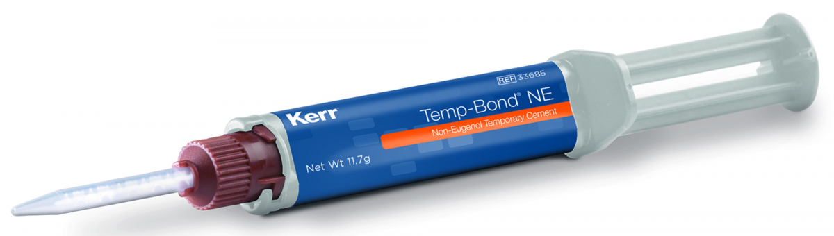 TEMPBOND NE Cemento provvisorio a base di ossido di zinco, senza eugenolo. Confezione: 2 siringhe automiscelanti da 11,7 gr cad. + 20 puntali automiscelanti