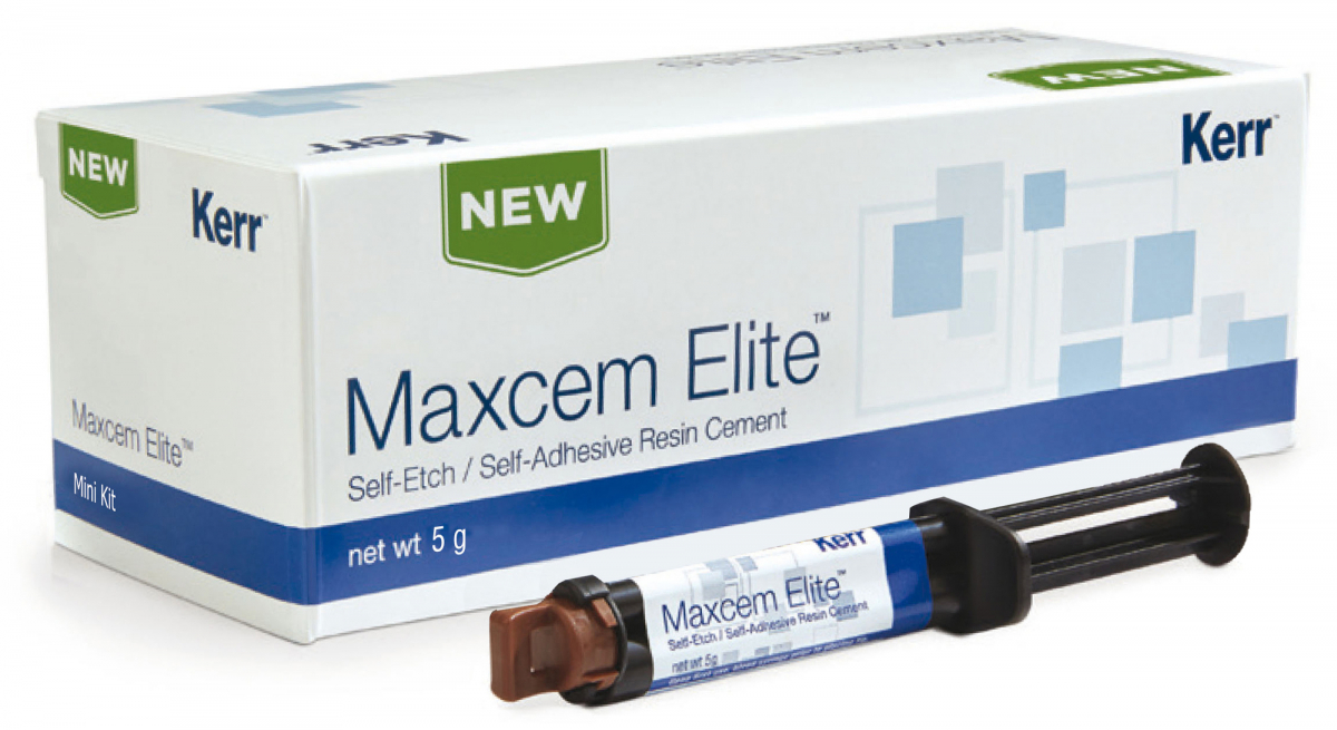 MAXCEM ELITE NF Cemento resinoso automordenzante e autoadesivo, a polimerizzazione duale (sia foto che autopolimerizzante), indicato per tutti i restauri indiretti. Applicazione diretta tramite siringa automiscelante e beccucci intraorali e intracanalari, per un miglior posizionamento in situ. Facile rimozione delle eccedenze. Valori di adesione sulla dentina superiori al 90% rispetto a quelli attuali, compatibilità con tutti i restauri indiretti, faccette comprese, compatibilità ai vari substrati dentali (ceramica, metallo, porcellana fusa su metallo, ossido di zirconio, ecc.). Migliorato meccanismo di autopolimerizzazione, anche in totale assenza di luce. Semplicità d'uso: non necessita di refrigerazione, nessuna miscelazione manuale e facile rimozione degli eccessi. Mini Kit: 1 siringa da 5 gr (colore Chiaro) + 9 puntali automiscelanti (5 standard + 4 con attacco per beccucci intraorali) + 4 beccucci intraorali