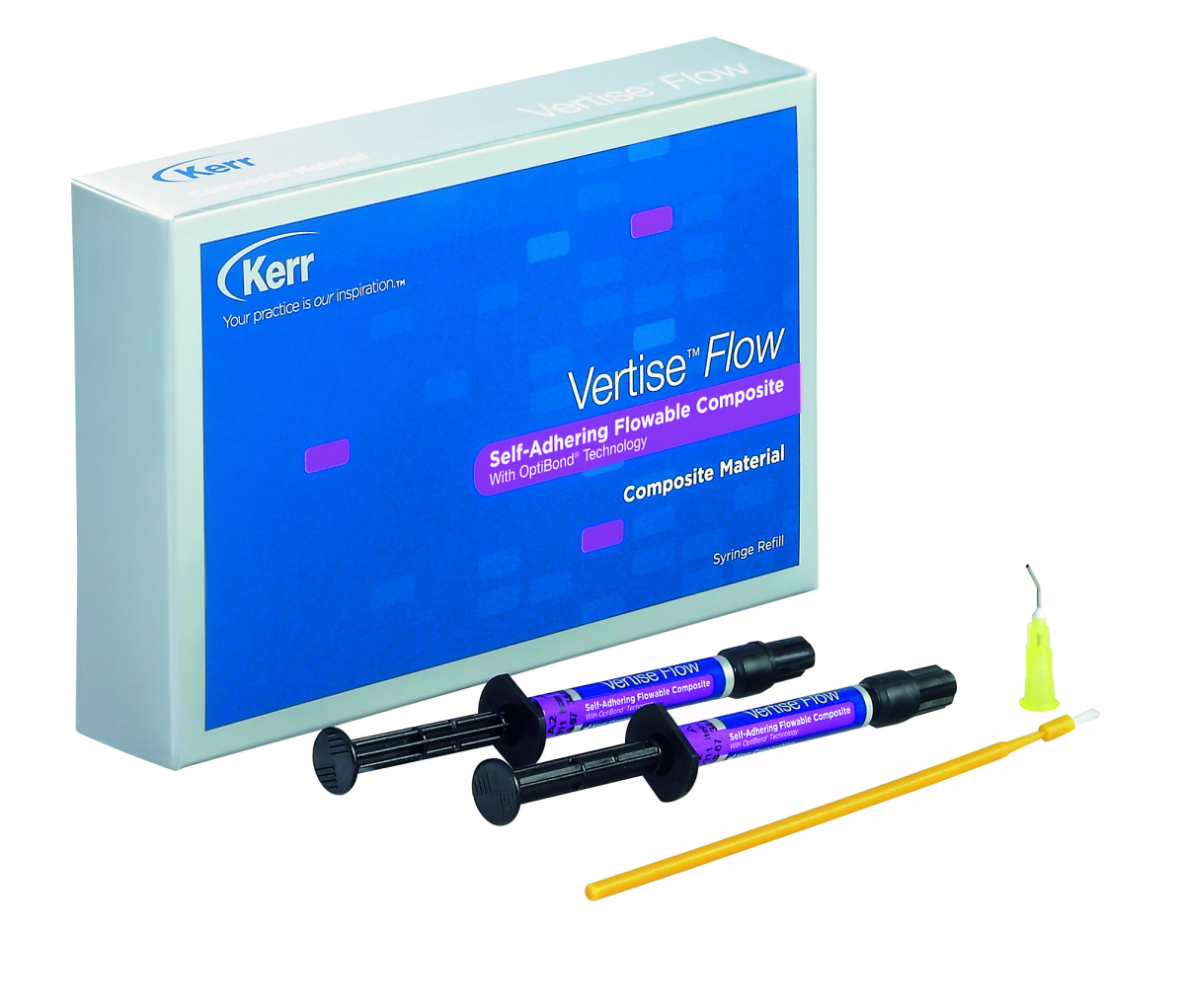 VERTISE FLOW Composito fluido autoadesivo, a base di resina fotopolimerizzabile per applicazioni dirette. Basato sulla comprovata tecnologia adesiva OptiBond, Vertise Flow elimina i passaggi aggiuntivi di mordenzatura/priming/adesione: automordenzante, ad elevata radiopacità, è indicato per piccoli restauri di classe I e come liner di cavità per restauri di classe I e II, sigillante di solchi e fessure, riparazione di difetti dello smalto, riparazione di restauri in porcellana, eliminazione di sottosquadri, piccole ricostruzioni occlusali in aree non sottoposte a carichi ed abrasioni incisali. Caratterizzato da un'elevata forza di adesione sulla dentina e sullo smalto, vanta un'eccezionale integrità del margine (ridotte microinfiltrazioni) ed eccellenti proprietà meccaniche. Dopo i trattamenti di lucidatura presenta delle caratteristiche di brillantezza simili a quelle dei compositi fluidi tradizionali. Confezione Ricambio: 2 siringhe da 2 gr cad. + 20 puntali di applicazione + 20 pennellini + guida alla tecn