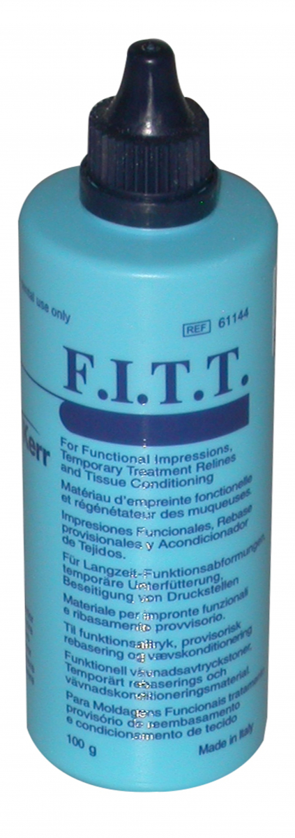 FITT Materiale siliconico per ribasature provvisorie, indicato anche come condizionatore tissutale e per impronte dinamico-funzionali. Flacone ricambio di polvere da 100 gr
