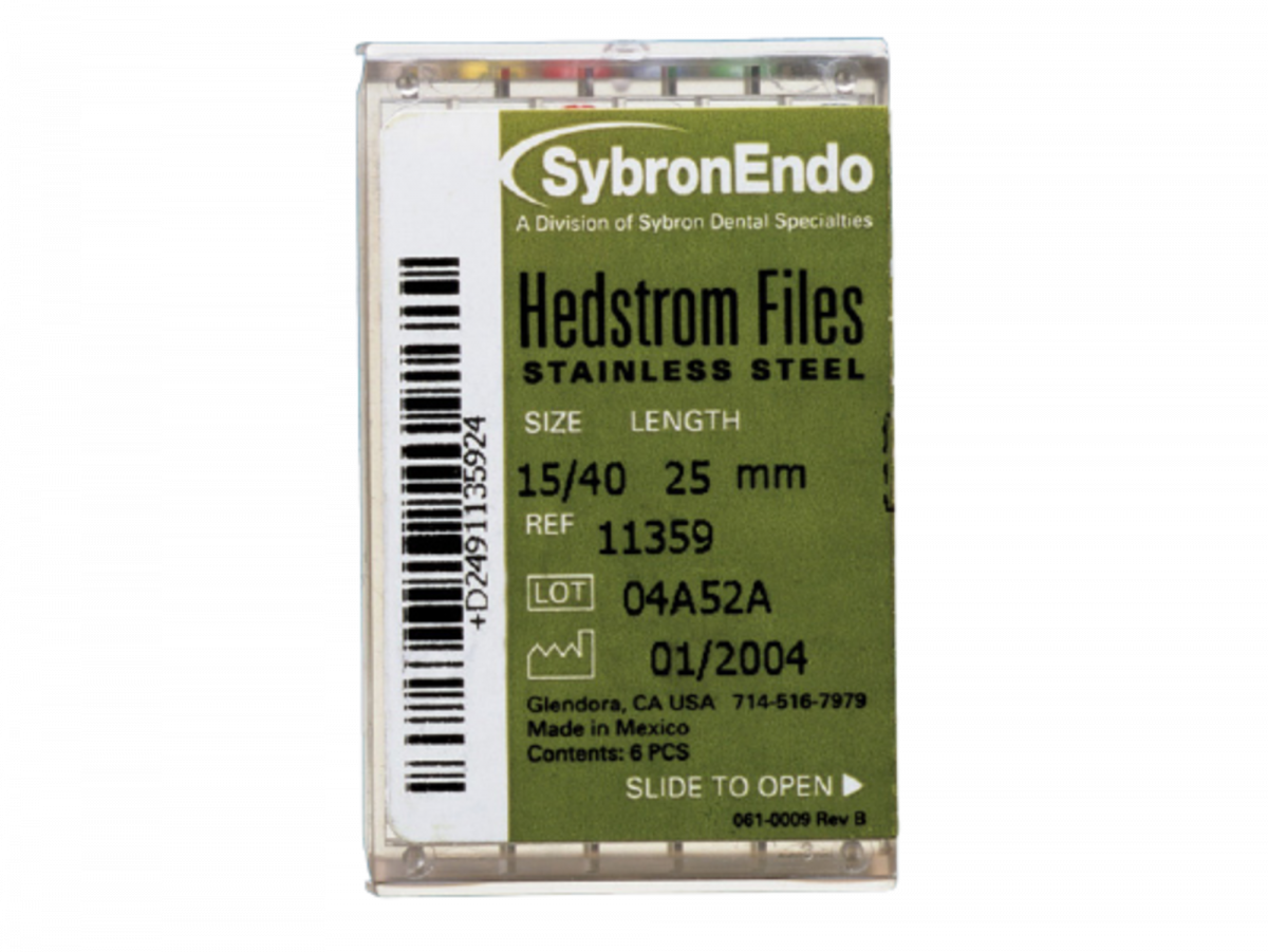 HEDSTROM FILES Strumentario canalare manuale in acciaio inossidabile: la profondità delle spire di taglio aumenta con la conicità, garantendo uno strumento più affilato e più flessibile. Placchetta da 6 strumenti Ø 15/40 - Lunghezza 25 mm