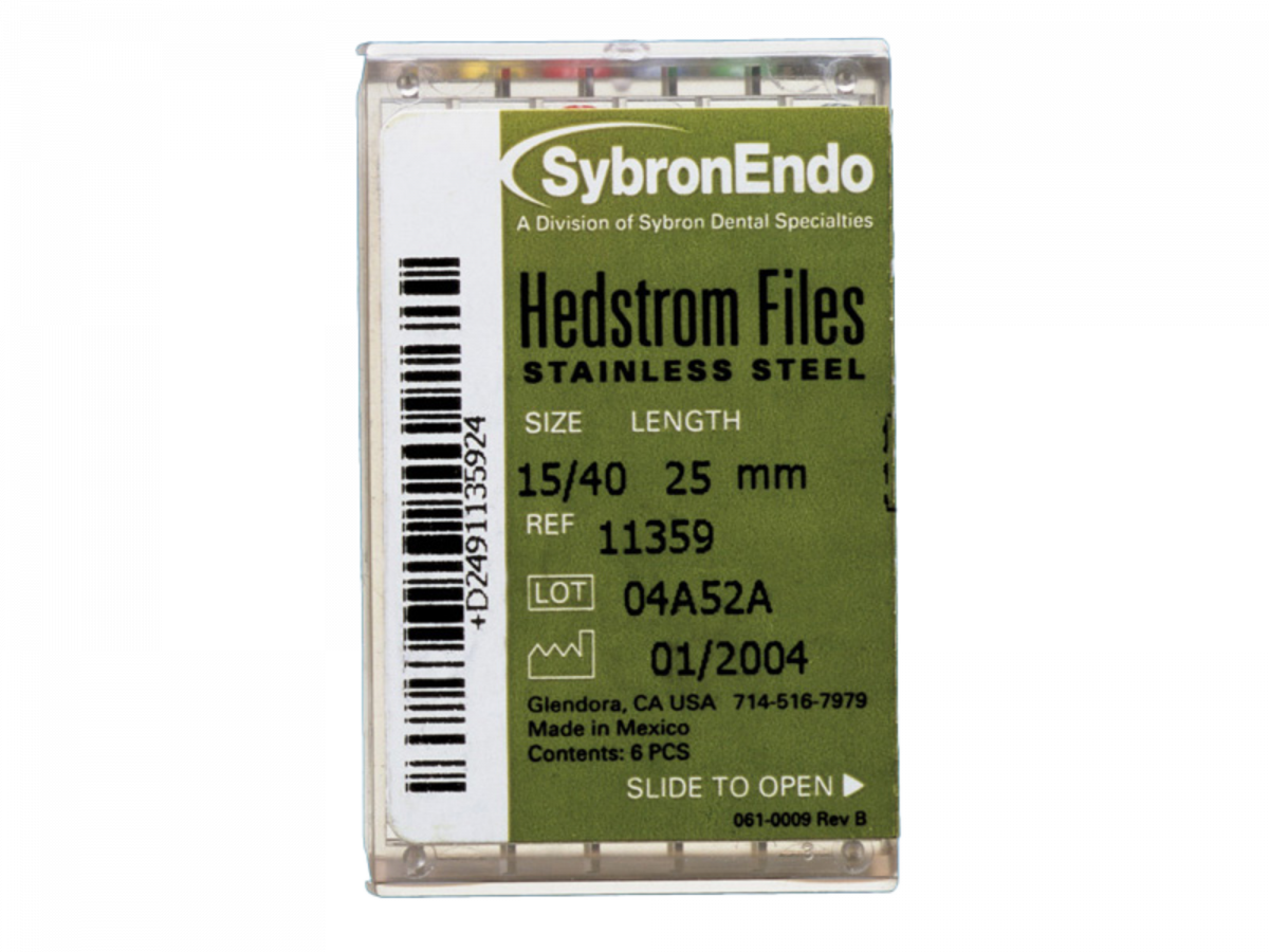 HEDSTROM FILES Strumentario canalare manuale in acciaio inossidabile: la profondità delle spire di taglio aumenta con la conicità, garantendo uno strumento più affilato e più flessibile. Placchetta da 6 strumenti Ø 15/40 - Lunghezza 30 mm
