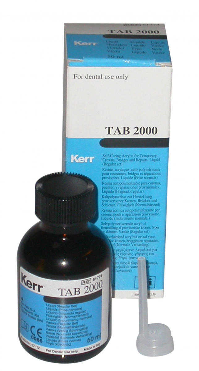 TAB 2000 Resina acrilica autopolimerizzante, per corone, ponti e riparazioni provvisorie. Confezione: liquido da 50 ml - Presa Regolare