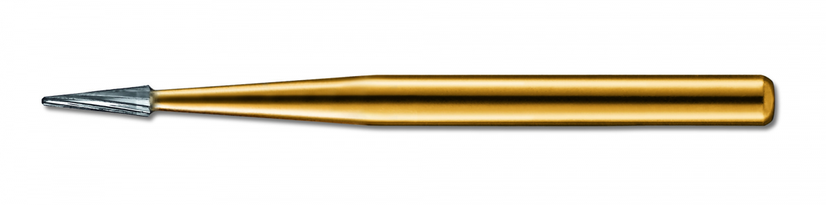 Frese per intaglio e rifinitura, per FG (Ø gambo 1,60 mm), forma rastremata corta, n.7114. Confezione: 5 pezzi