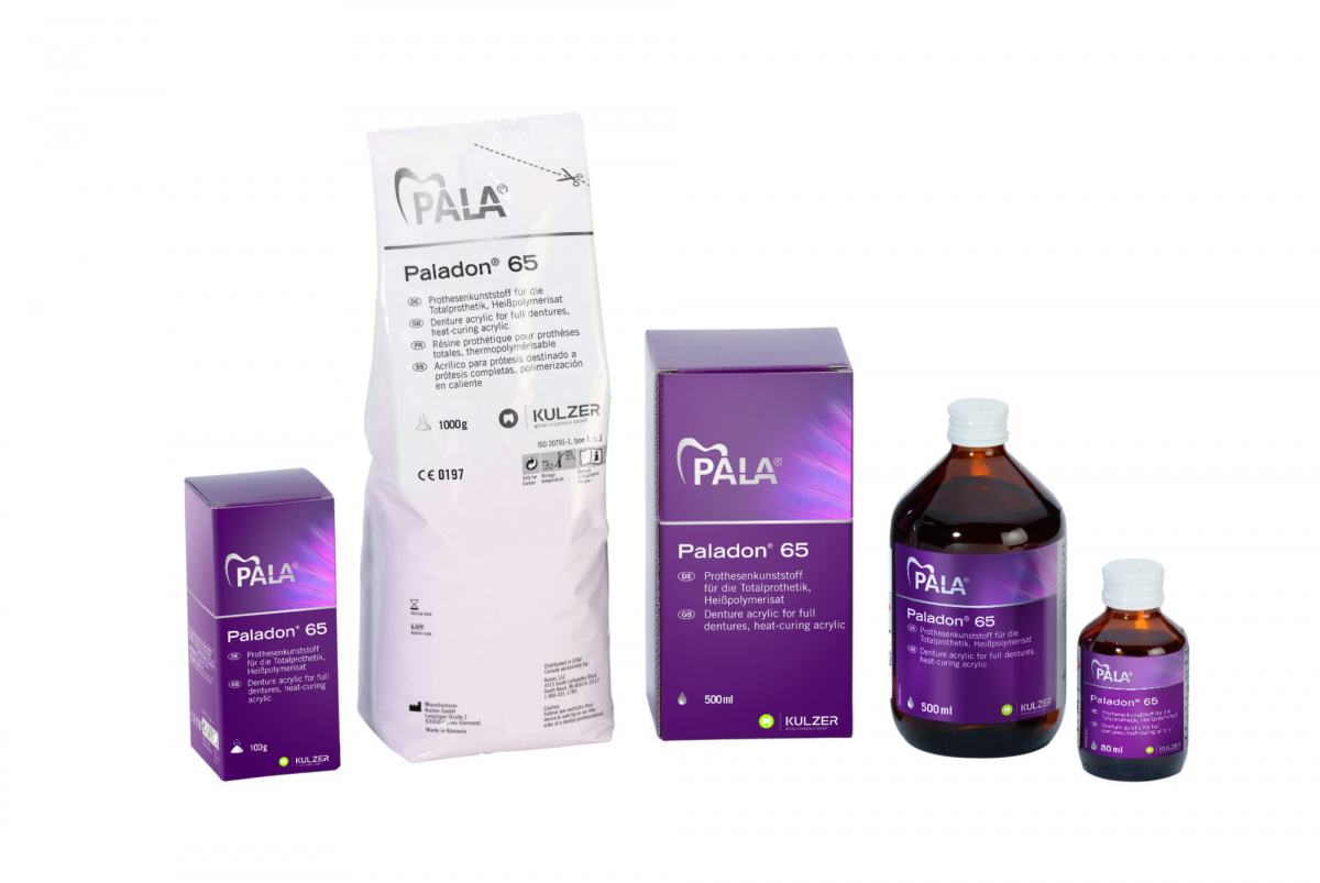 PALAVIT G Resina acrilica, autopolimerizzante, calcinabile, per lavori di protesi combinata, per la realizzazione di cappette e per bloccaggi di strutture metalliche sia sul modello che in bocca. Polvere da 500 gr