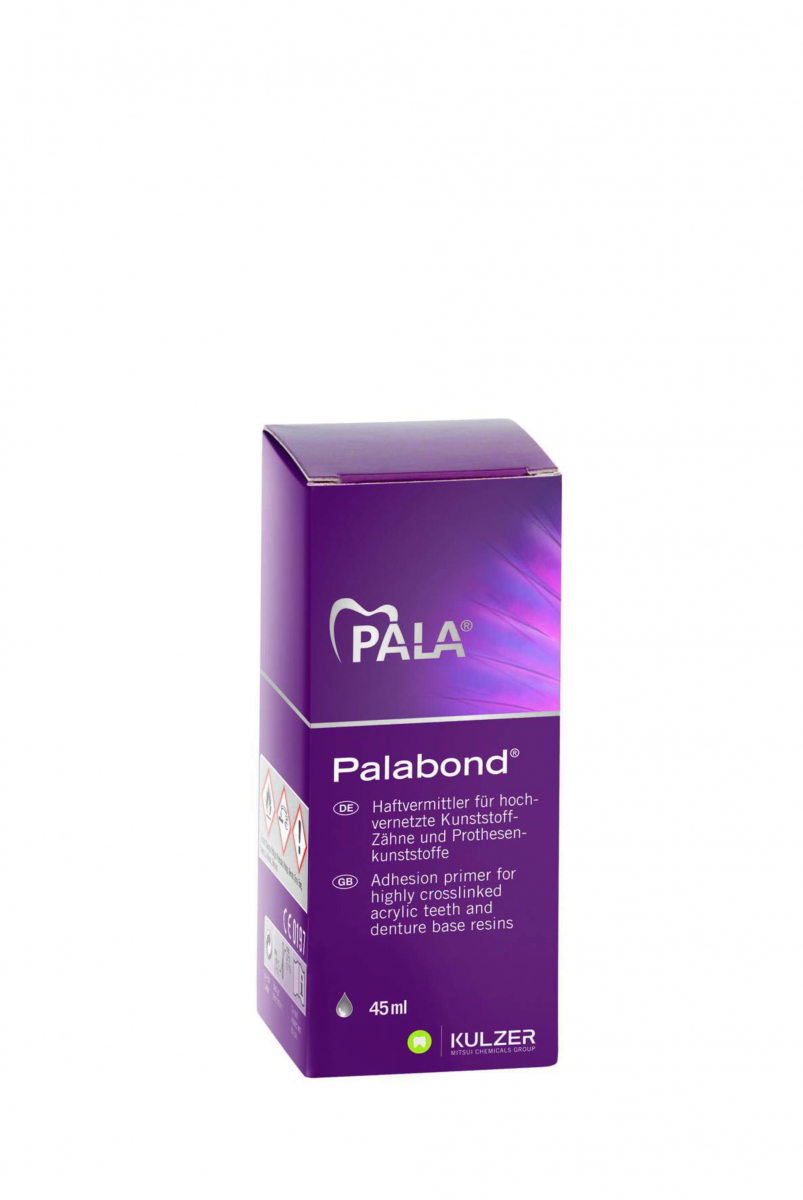 PALABOND Adesivo universale, indicato per aumentare l'adesione tra i denti e la base protesica e tra materiali per riparazioni con la base preesistente. Flacone da 45 ml