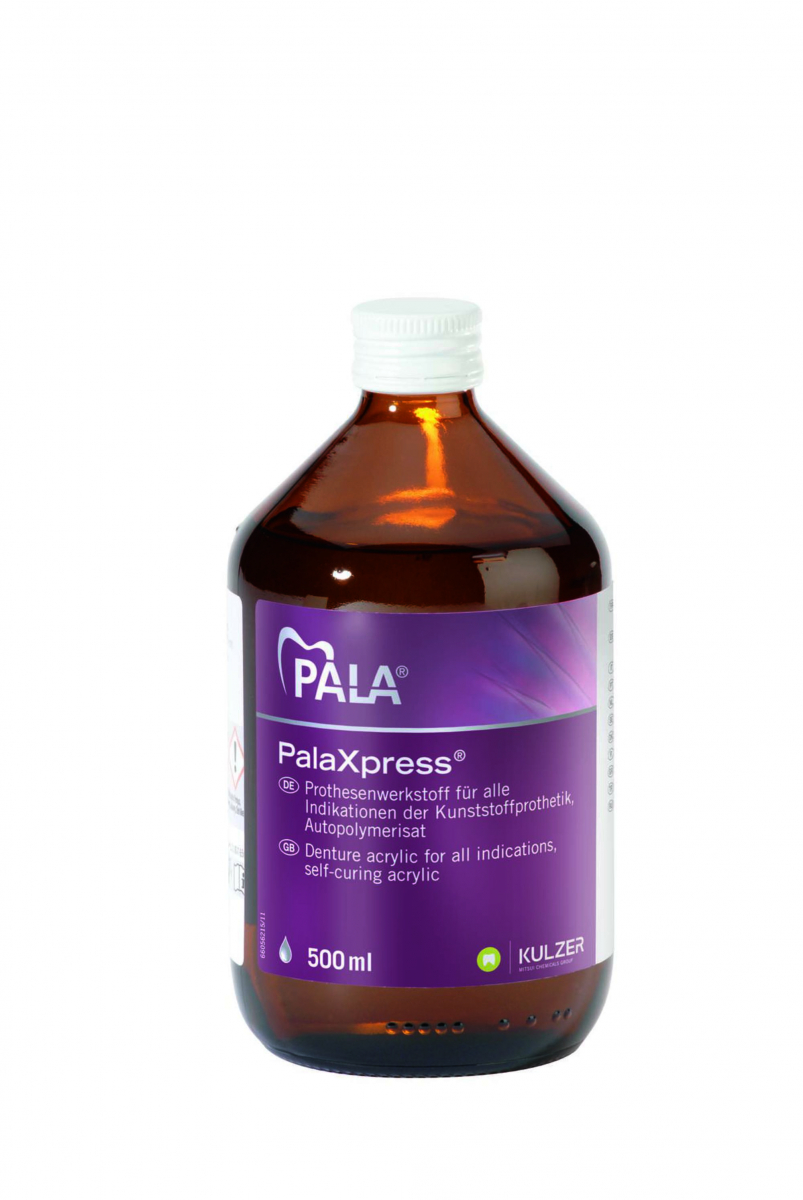 PALAXPRESS Resina acrilica universale polimerizzabile a freddo, indicata per protesi totali e parziali, per il completamento in protesi scheletriche, funzionalizzazione dei bordi e riparazioni. Con il sistema PalaXpress/Palajet si possono realizzare protesi totali con il processo di iniezione. Liquido da 500 ml
