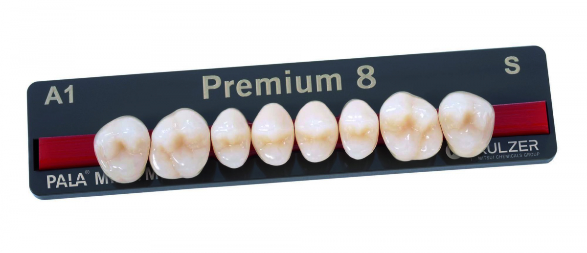 PREMIUM 8 Denti acrilici realizzati con Nanopearls, microfiller e nano particelle di nuova concezione, che conferiscono una resistenza all'abrasione superiore del 50% rispetto ai materiali in PMMA convenzionali; biocompatibili, resistenti alla placca, elevata stabilità del colore, migliorata adesione tra i vari strati (tecnica multiplayer tridimensionale). Inoltre sono realizzati con tecnologia CAD/CAM, che consente di realizzare denti identici tra loro grazie alla digitalizzazione bilaterale. Denti posteriori con superfici occlusali multifunzionali: la loro morfologia corrisponde con la relazione occlusale dei denti naturali e questa caratteristica consente di montarli senza necessità di ritocchi successivi sia in situazioni di protrusione che di disclusione.
