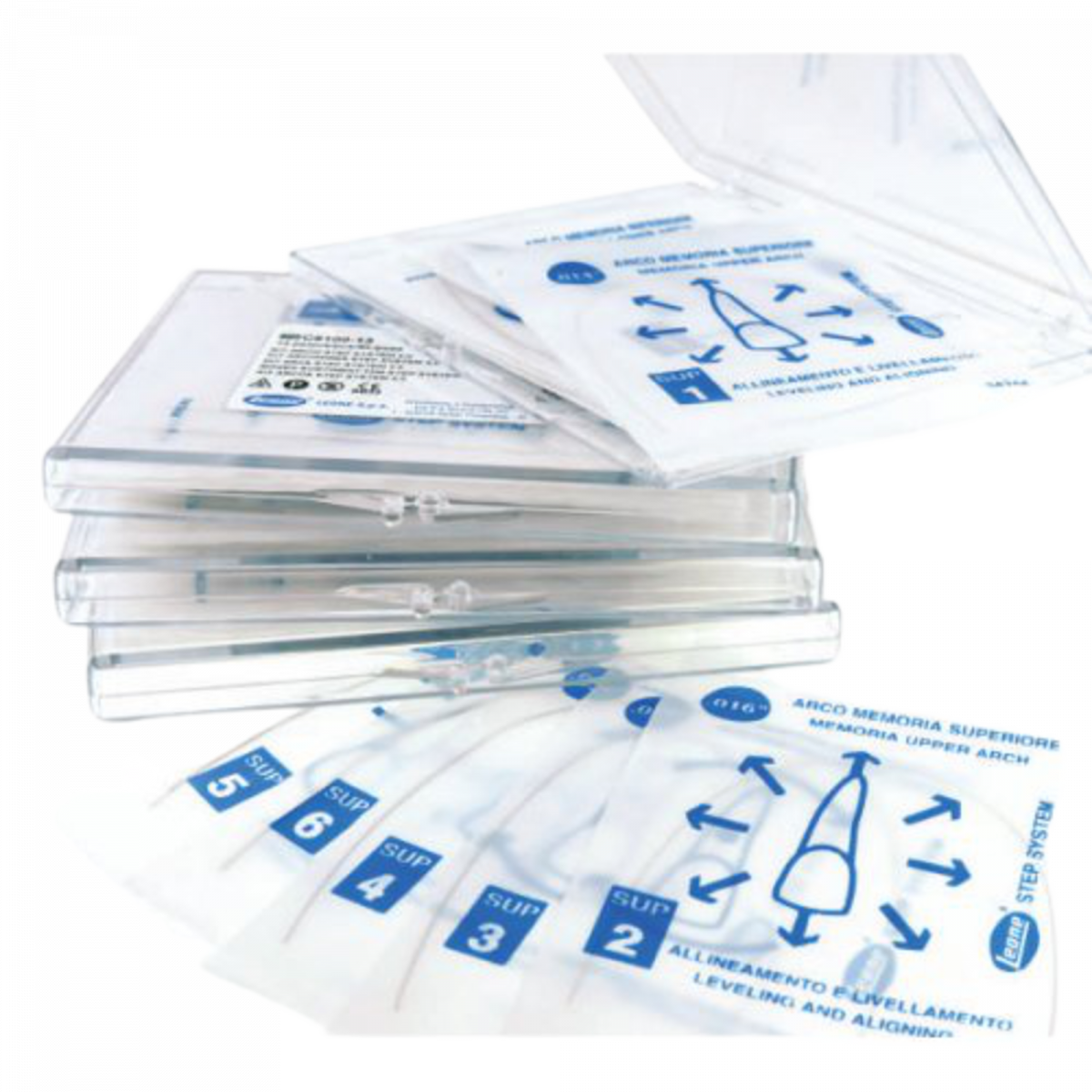 l’esecuzione di un caso con tecnica STEP 2.0. Le confezioni sono contraddistinte da un numero e da un disegno che indicano rispettivamente la sequenza standard dell’applicazione e la funzione dell’arco.