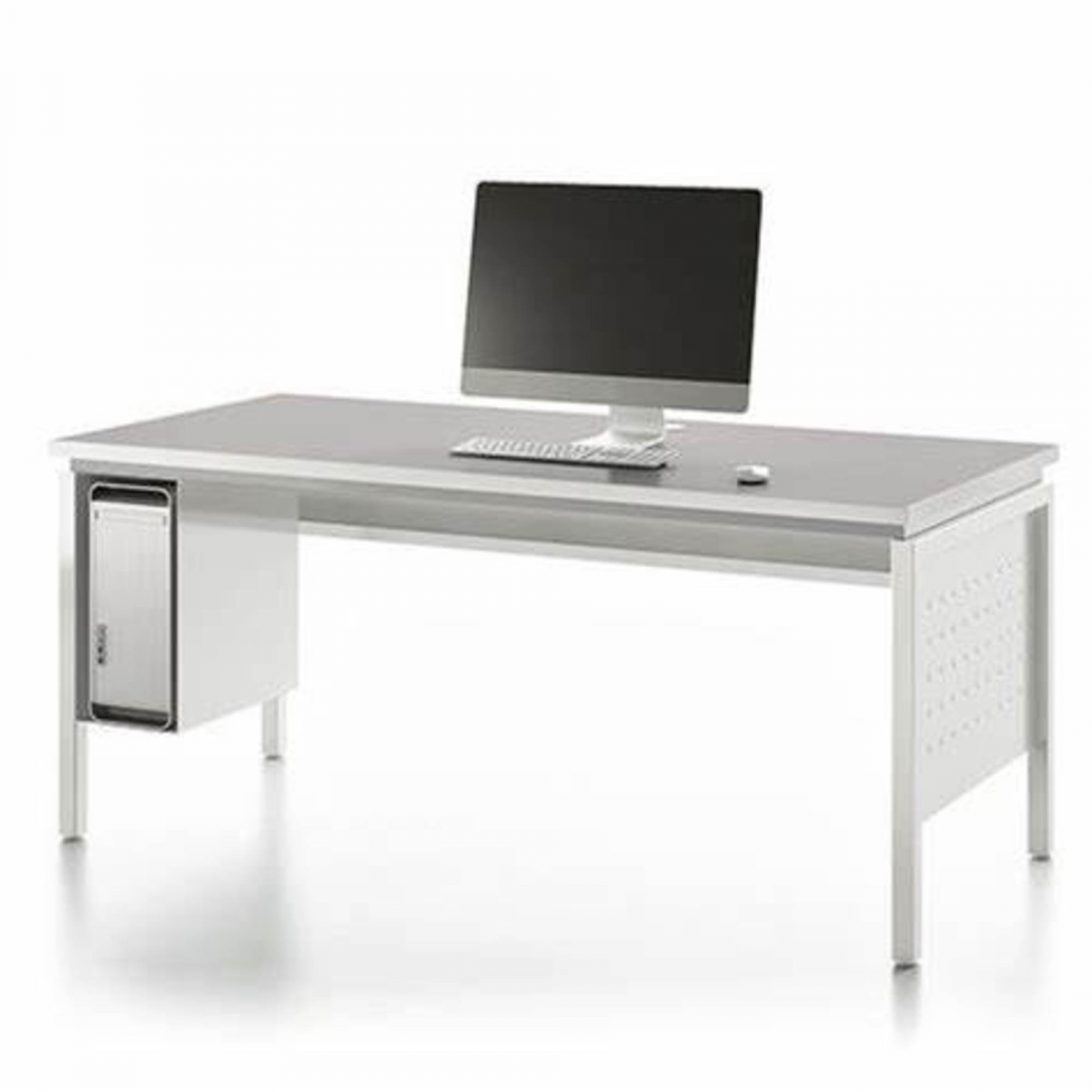 Il Maestrowork è una postazione di lavoro progettata per l'uso con computer, dotata di un sistema passacavi integrato. È possibile personalizzarla con accessori come un box porta CPU, una cassettiera o una cassettiera su ruote, a seconda delle esigenze.