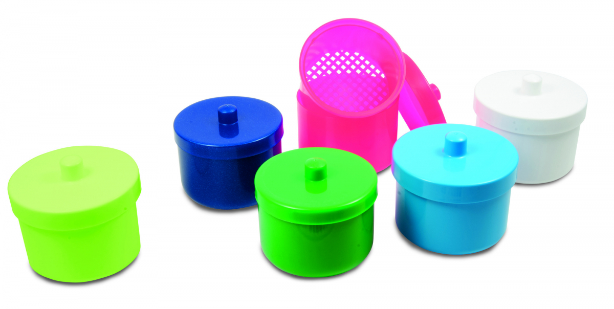 Contenitore per protesi con filtro interno autoclavabile , confezionato in sacchetto singolo.