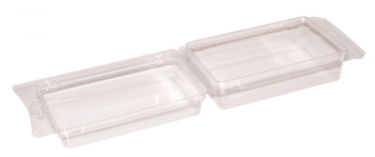 BOX PLASTICA Contenitore in termoformato trasparente, con chiusura a pressione e con etichetta adesiva personalizzabile. Dimensioni: 10x15x7 cm Confezione: 10 pezzi