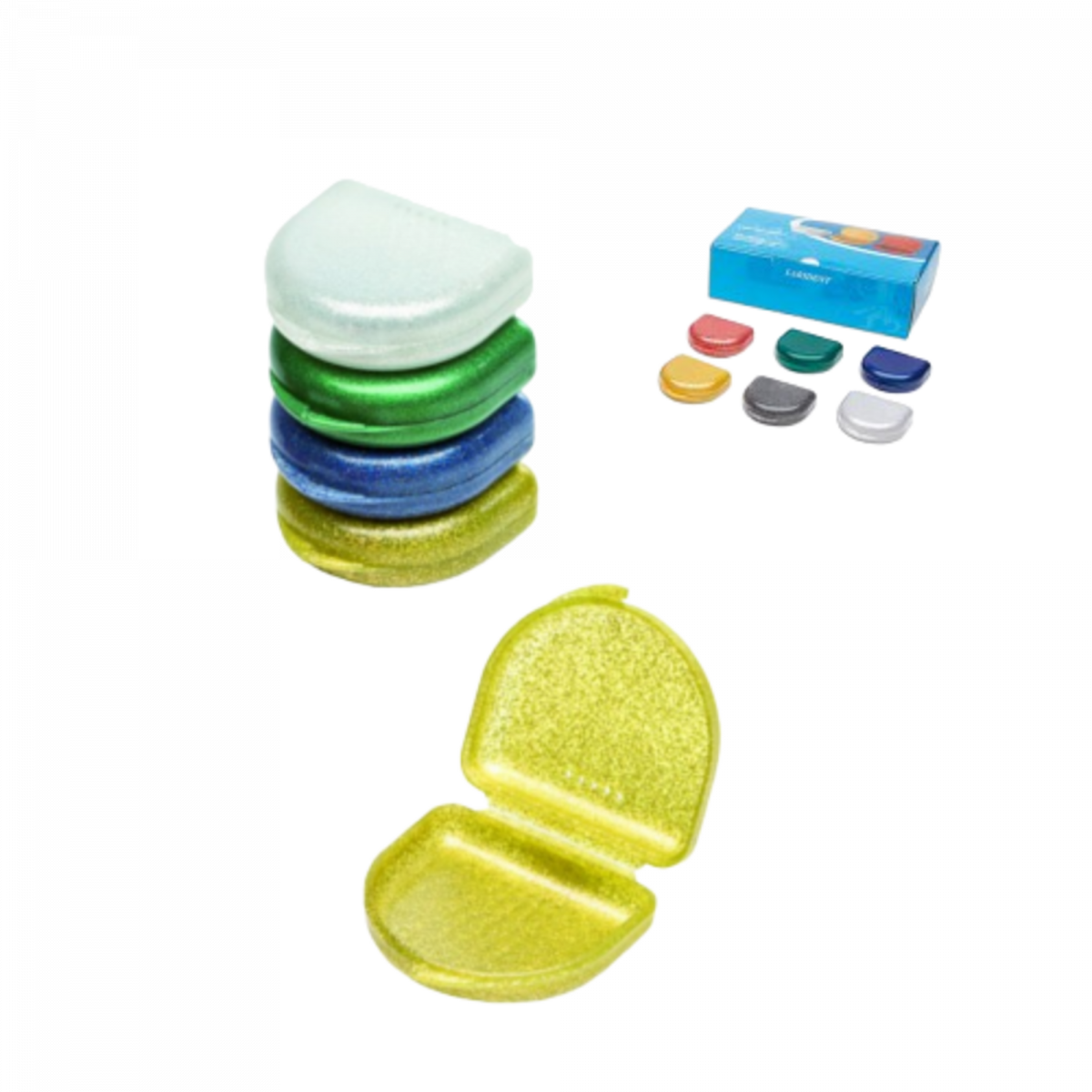 Confezione mista di porta bite colorati glitter con fori di ventilazione, 20 pezzi.