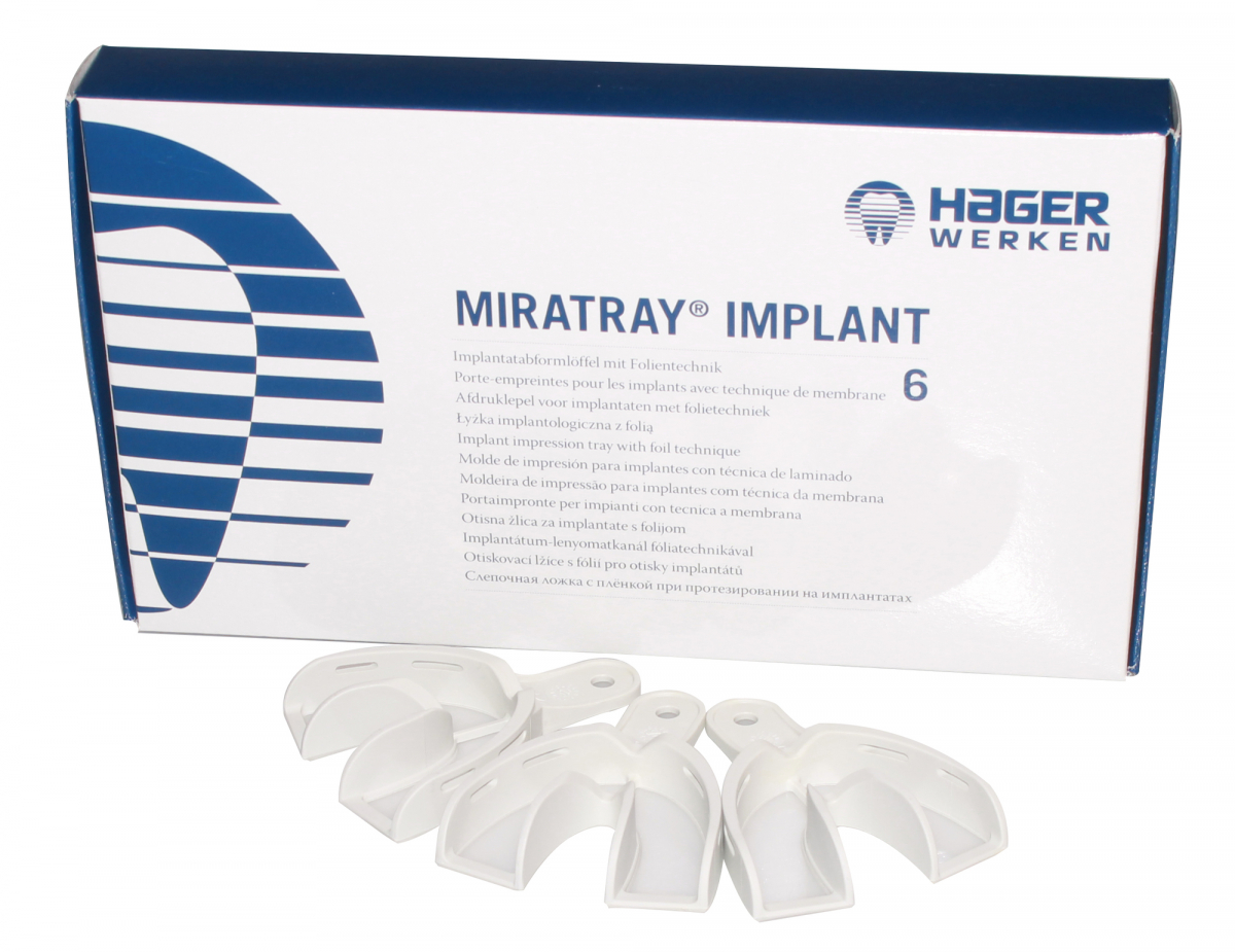 MIRATRAY IMPLANT Portaimpronte trasparenti, monouso, in materiale plastico acrilico forabile per implantologia: posizionamento facile e sicuro sui perni di implantologia, per arcate parziali o edentuli. Confezione Ricambio: 6 portaimpronte Misura L1 - small inferiore