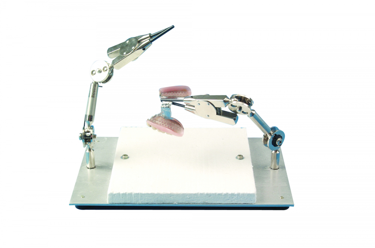 SOLDERFIX Supporto per saldature ideale per fissare gli elementi da saldare in modo ottimale: dotato di 2 pinzette montate su bracci snodati, con base in materiale ceramico resistente alle alte temperature. Dimensioni: 23x15,2 cm