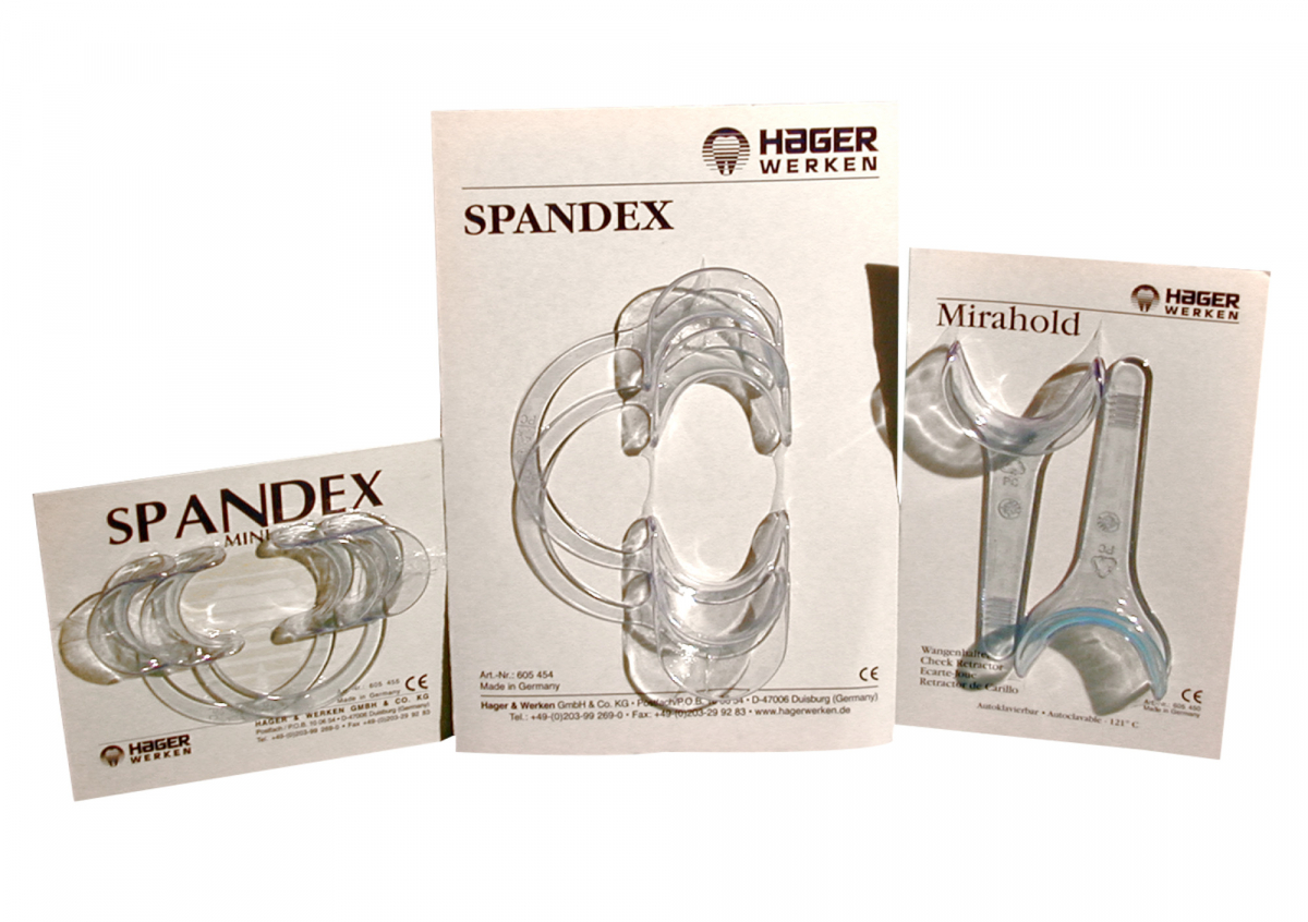 SPANDEX APRIBOCCA Divaricatore labiale, in polibicarbonato, ideale per fotografie, detartraggio, posa di brackets, ecc. Non riflettente, consente una visione integrale dei frontali e dei molari. Autoclavabile a 121° C. Versione Mini: per bambini. Confezione da 2 pezzi in blister.