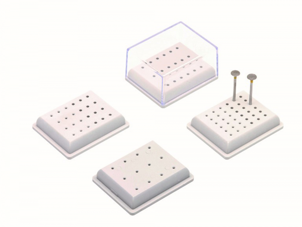 PORTAFRESE Scatola per frese per turbina, per contrangolo e per manipolo. Base sterilizzabile fino a 134°C. Scatola per 24 frese