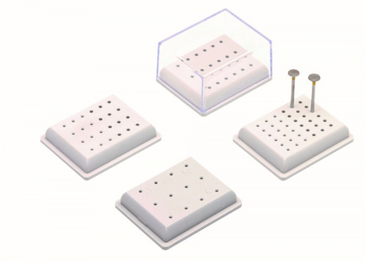 PORTAFRESE Scatola per frese per turbina, per contrangolo e per manipolo. Base sterilizzabile fino a 134°C. Scatola per 36 frese