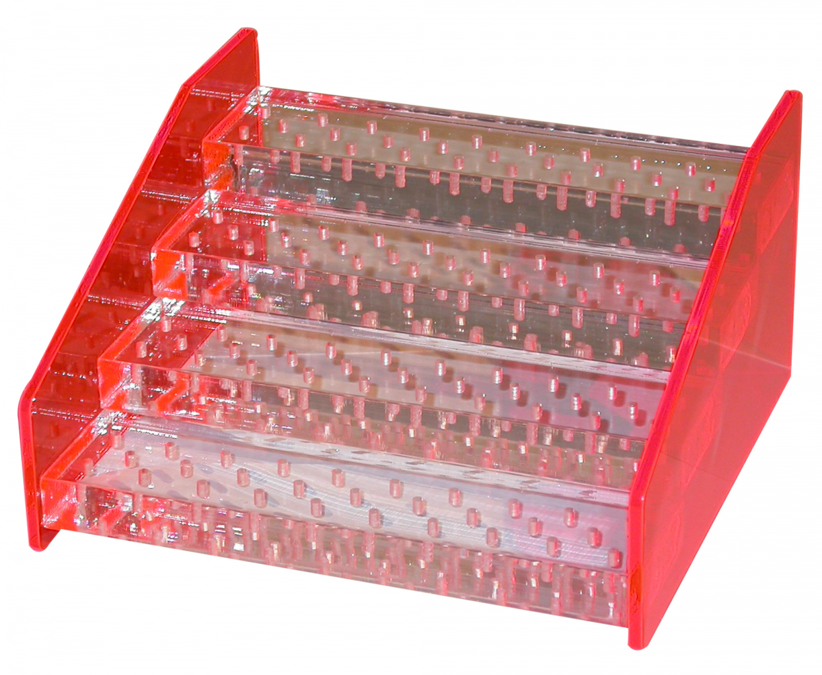 PORTAFRESE IN PLEXIGLASS Portafrese medio a scala,in plexiglass, per frese per turbina e per contrangolo. Portafrese per 116 frese