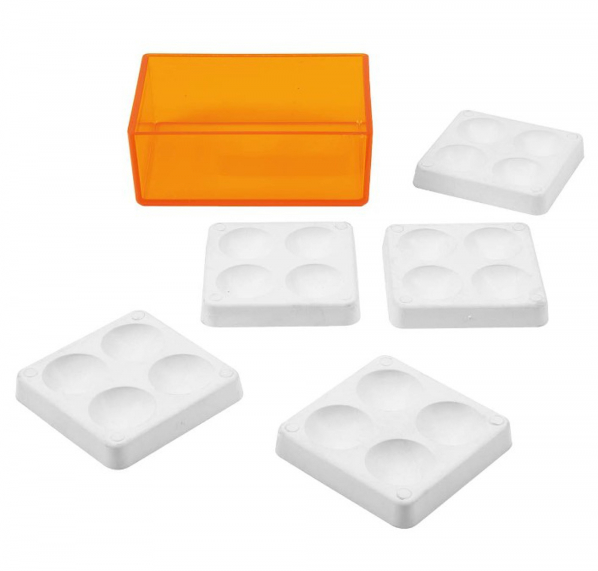 pozzetto / contenitore di plastica per miscelazione, con 4 cavità interne per contenere contemporaneamente 4 materiali o componenti da mescolare.