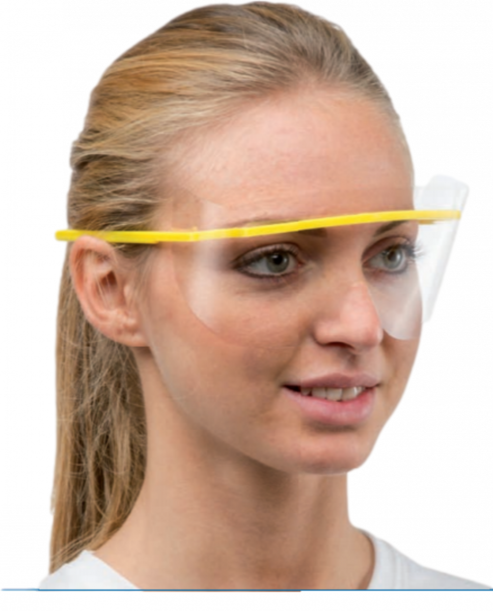 Occhiali protettivi in policarbonato, spessore 0,12 mm. Kit: 10 occhiali montati pronti all'uso.