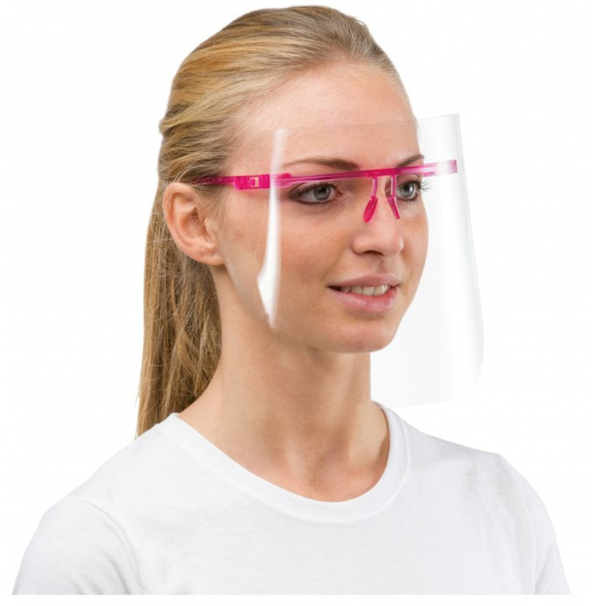 visiera protettiva con montatura e visiere sottili anti-appannamento. Materiale ACRILICO (visiera) + montatura integrata a clip.