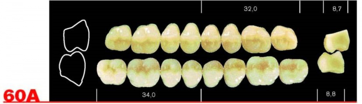 Disponibile nella colorazione 2C-3R in un assortimento completo di 36 forme anteriori e 20 posteriori.