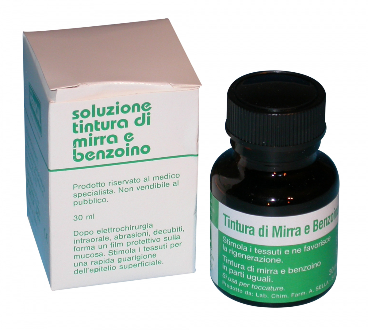 TINTURA DI MIRRA E BENZOINO Soluzione che stimola i tessuti per una rapida guarigione dell'epitelio superficiale. Flacone da 30 ml