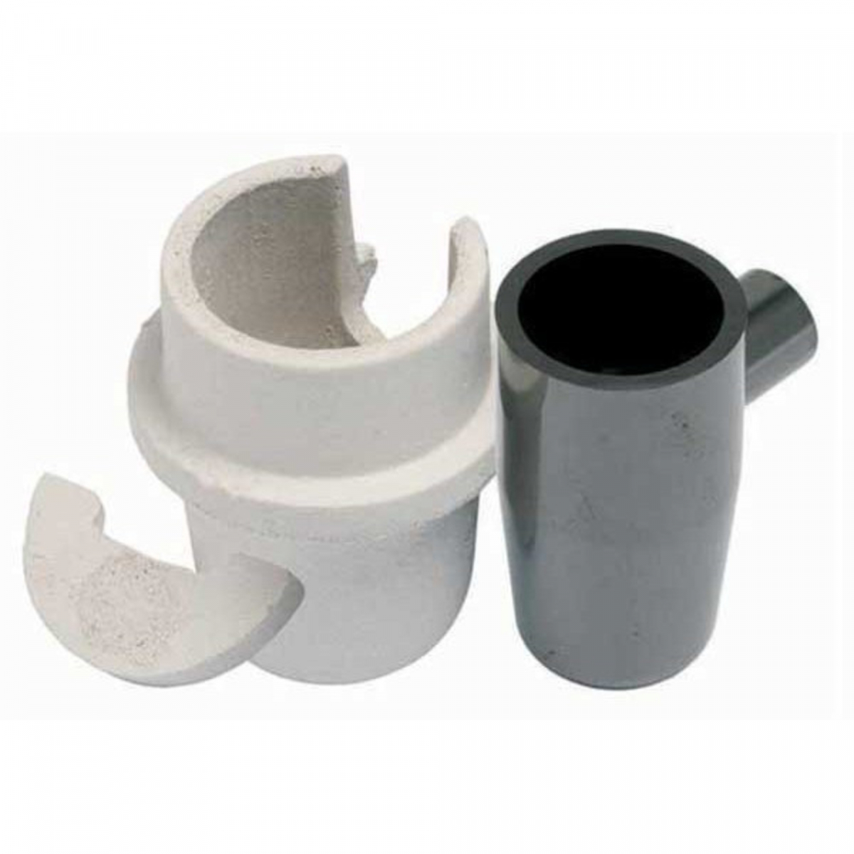 Crogiolo in grafite vetrosa completo di contenitore ceramico (C20) e coperchio, indicato per la fusione di leghe preziose e palladiate.