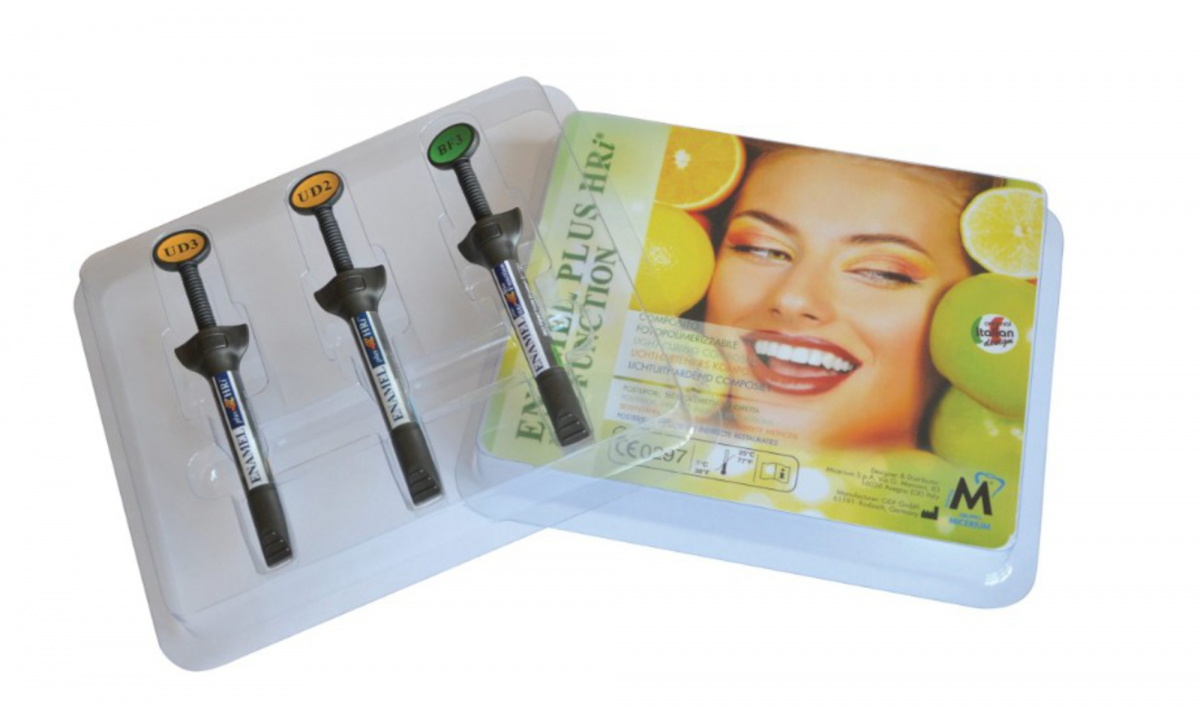 Questo kit appartiene alla linea Enamel Plus HRI Bio Function, ovvero la versione biocompatibile del composito, progettata per minimizzare l’uso di componenti potenzialmente tossici.