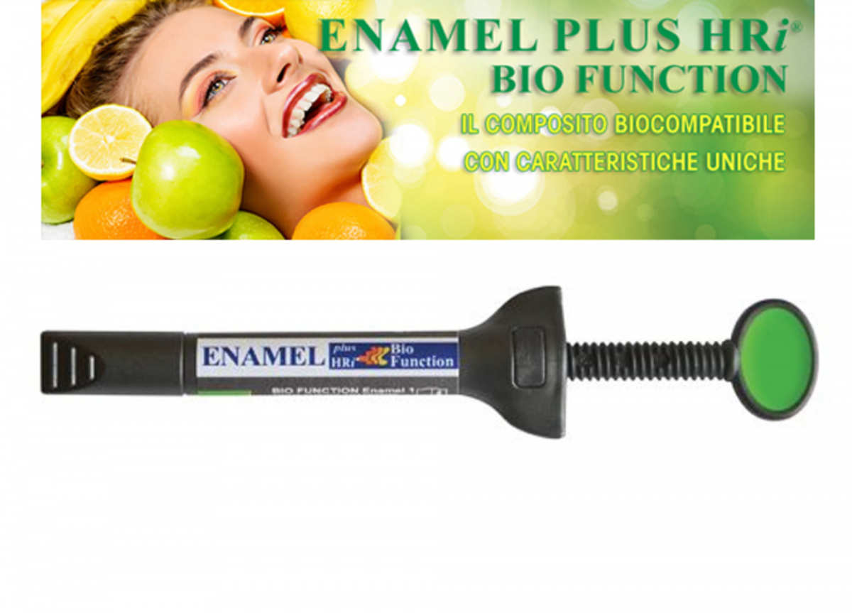 namel Plus HRi Bio Function, è il nuovo rivoluzionario composito per settori posteriori totalmente biocompatibile con caratteristiche fisiche uniche essendo un composito con una abrasione vicina a quella dello smalto naturale e con caratteristiche meccaniche e funzionali identiche a quelle dell’oro.