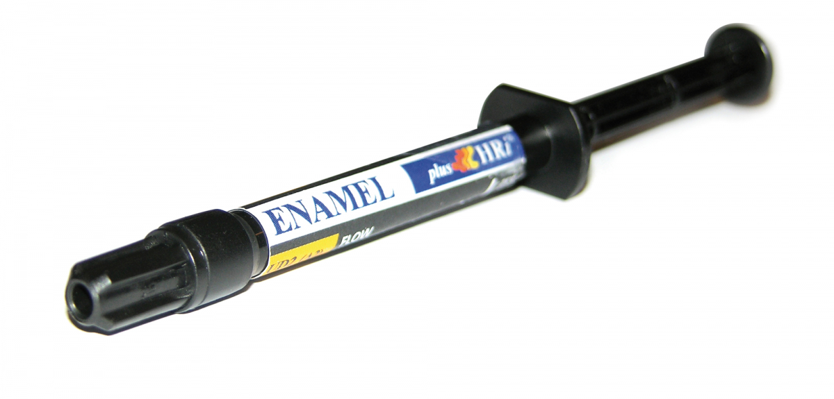 ENAMEL PLUS HRI "FLOW" Composito fluido altamente riempito con migliorata viscosità (senza bolle) ed elasticità, maggiore radiopacità e migliori proprietà fisiche, da utilizzare come sottofondo nei posteriori per restauri diretti e indiretti e negli anteriori nelle V classi. Siringa da 2 gr di dentina + 3 applicatori con ago