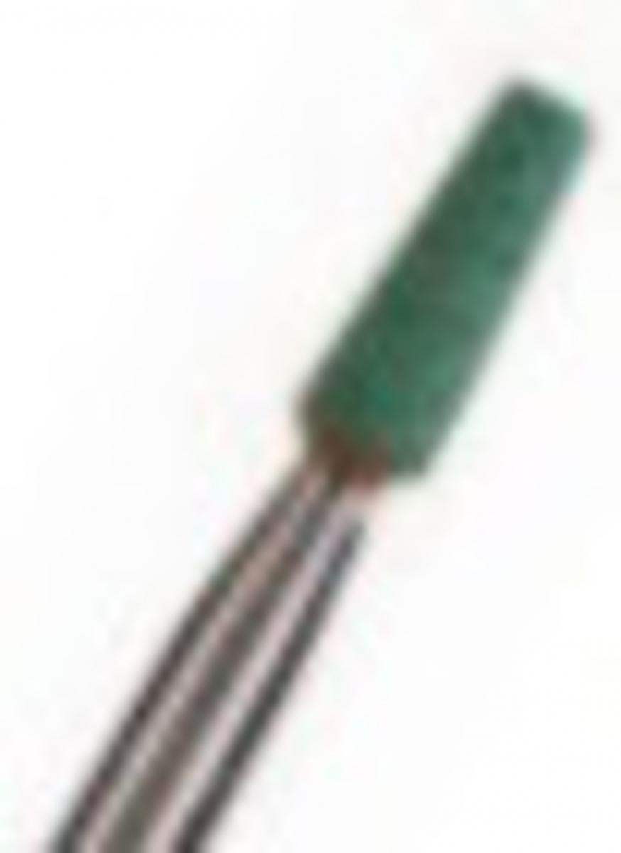 punte montate rivestite con abrasivo verde — tipicamente un abrasivo ceramico o in carburo di silicio, impiegato per la rifinitura e la finitura di materiali dentali (resine composite, ceramica, etc.).