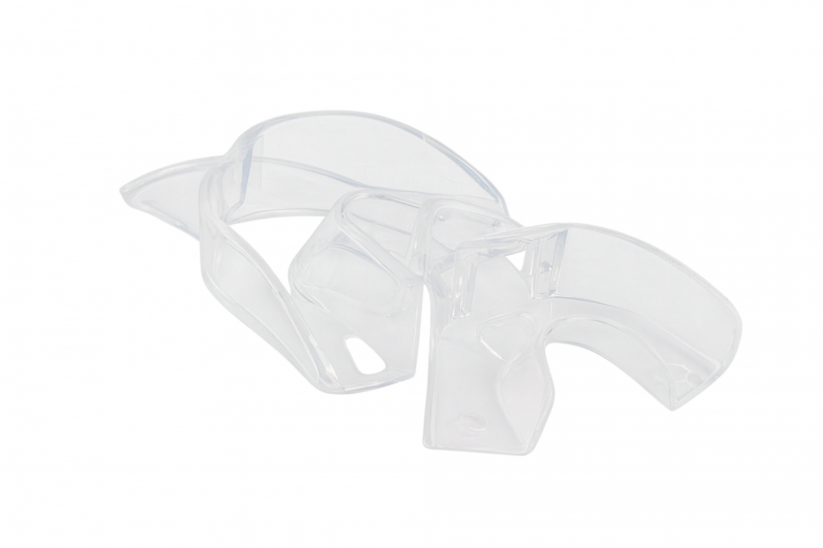 plastica trasparente / termoplastica (materiale rigido, adatto a impronte con silicone / alginati).