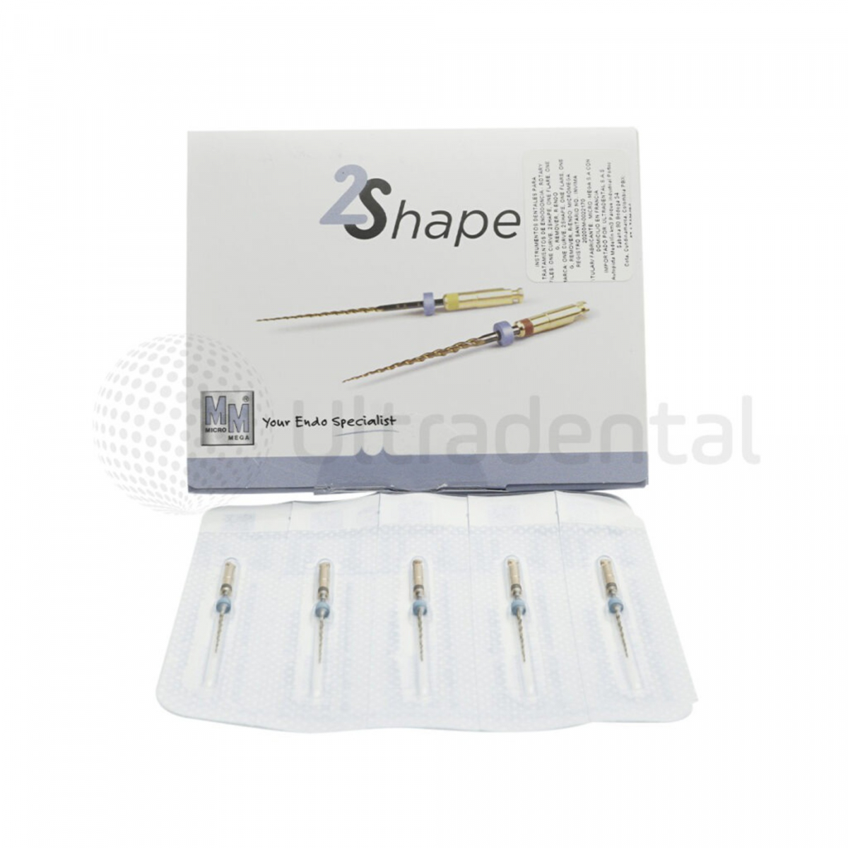 Micro‑Mega 2Shape Mini, modello F40, ISO 40, conicità 4%, lunghezza 21 mm, confezionamento in blister sterile da 5 pezzi.
